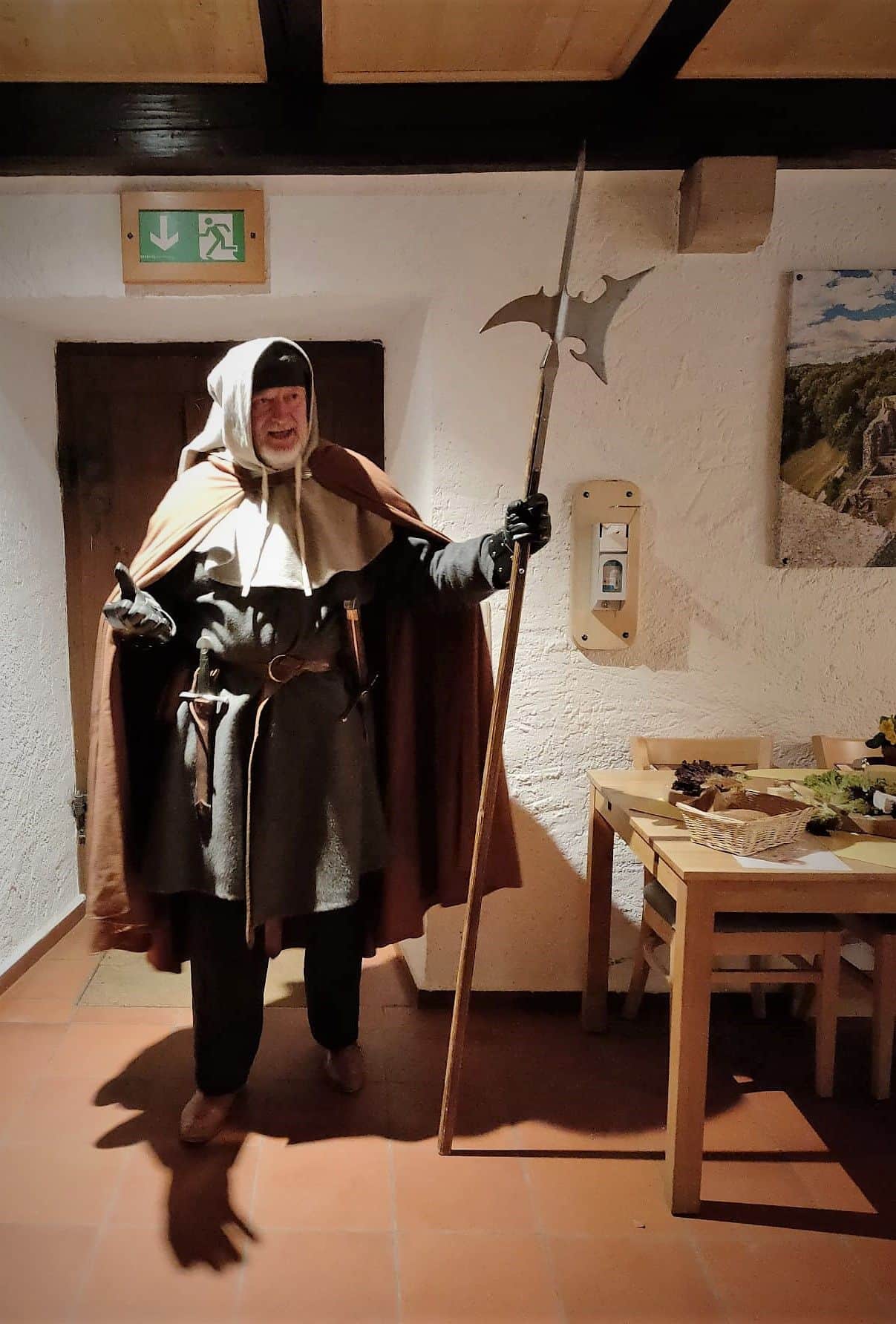 Vor seinem Kontrollgang bekommen die Gäste in der Burgstube ein mittelalterliches Vesper zur Stärkung serviert. Danach können sie ihn auf seinem abendlichen Rundgang begleiten.